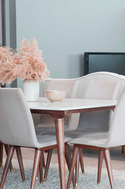 The table that appeared with the synthesized of marble, wood and brass produces a modern and stylish look. A timeless design that can easily be combined with both classic and modern product groups.